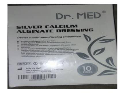 Silver calcium alginate dressing 10 by 10cm